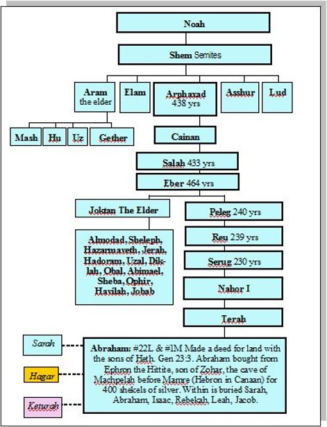| 1951 BC | Shem was 490 yrs of age/ Arphaxad 390 / Salah 355 / Eber 325 / Serug 229 / Terah 170 / Abram 40 / Sarai 30 2064 BC – 1986 BC: Twin Dynasty wars in Egypt. |