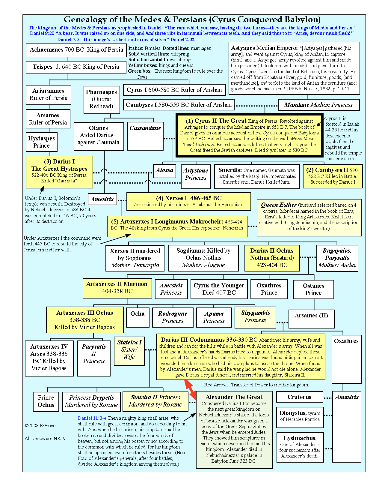 Daniel 9:1 In the first year of Darius (522 BC) (See chart below) the son of Ahasuerus, of the lineage of the Medes, who was made king over the realm of the Chaldeans—