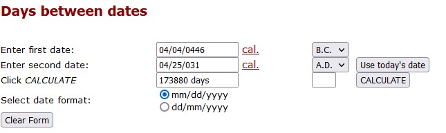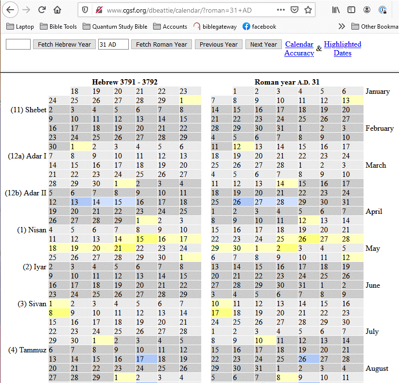 Using Julian date for 31 AD is 04/25/0031 (See chart above), we can determine the date for Nehemiah’s command to rebuild the city if we count backward 173,880 days.