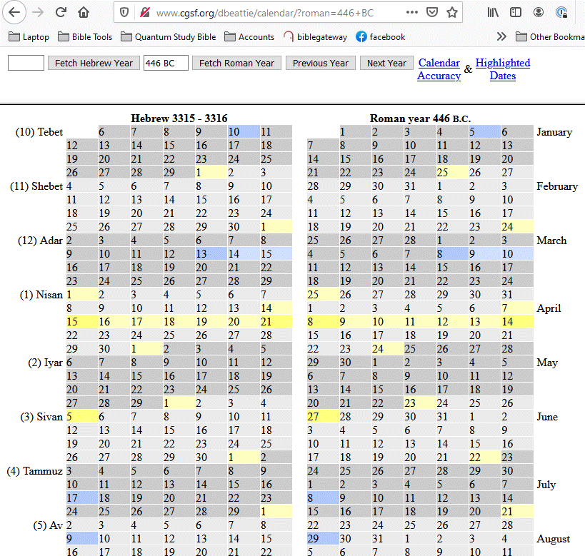 - “Summary, there are 69 weeks or 173,880 days from April 3, 446 BC to April 25, 31 AD on the Julian Calendar. See Timeline BC 446 BC. (311-500 BC) Nehemiah was given the command to rebuild the city on March 4, 446 BC and Jesus was crucified on April 25, 31 AD on the Julian calendar.“