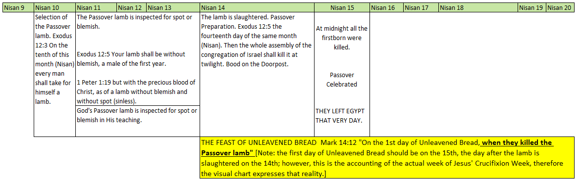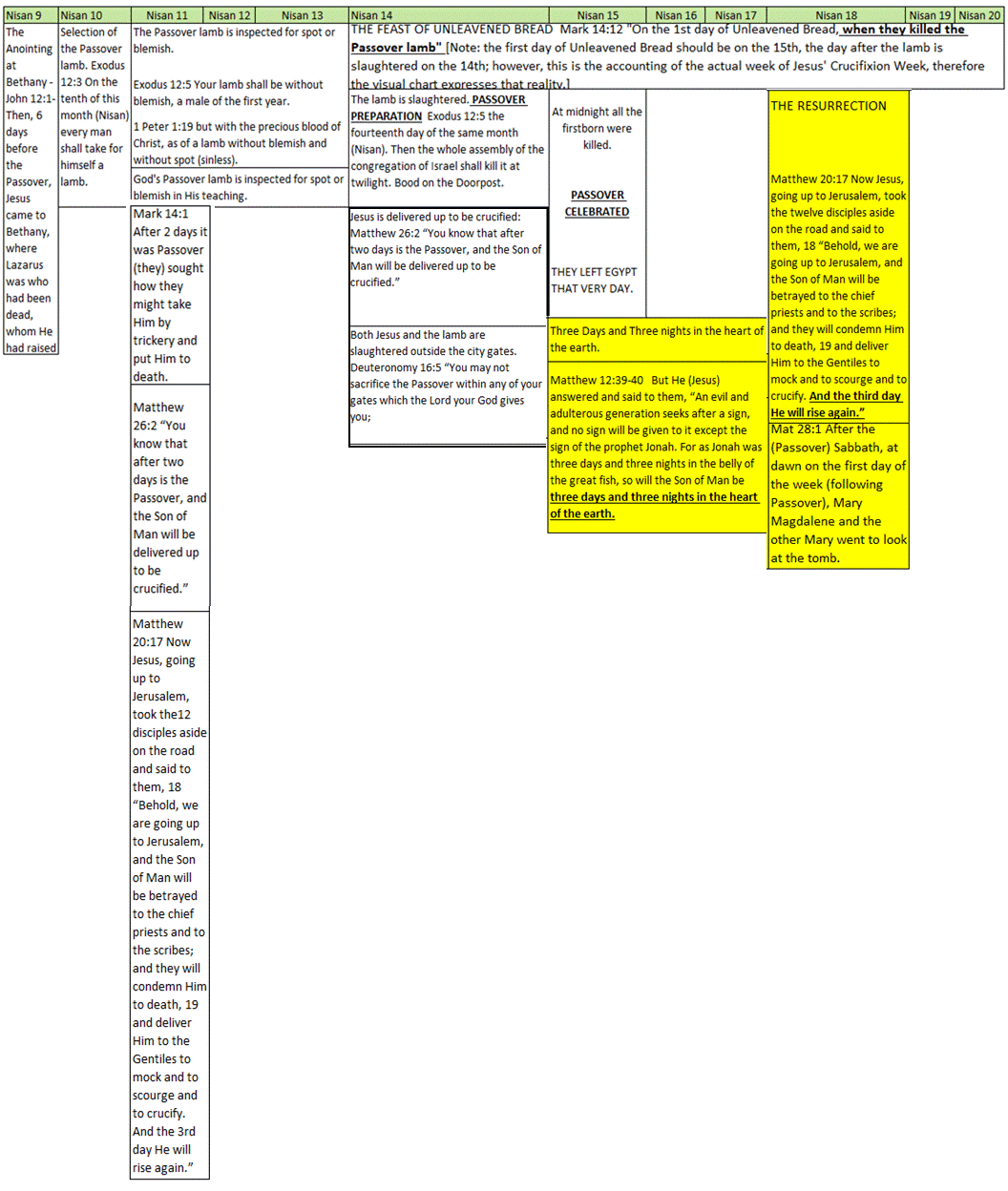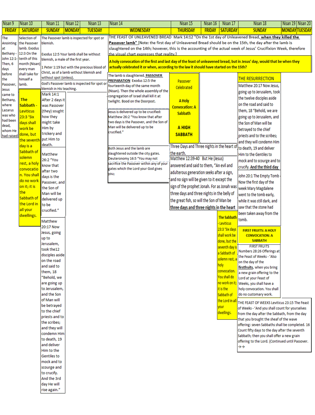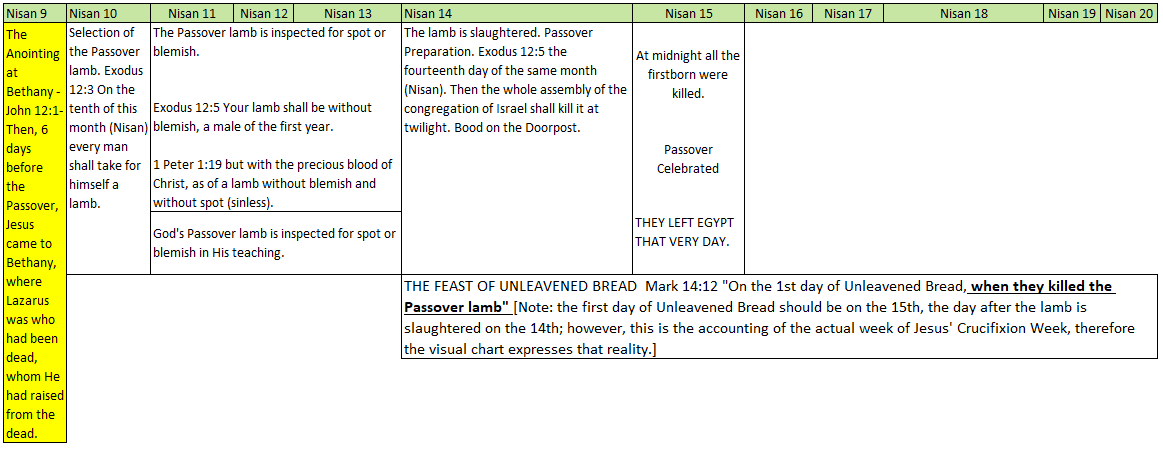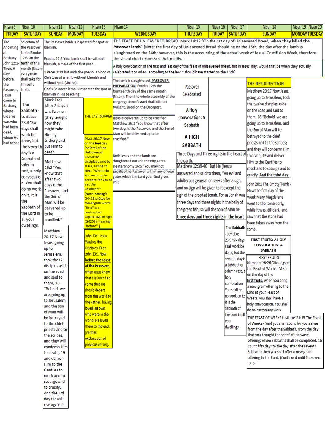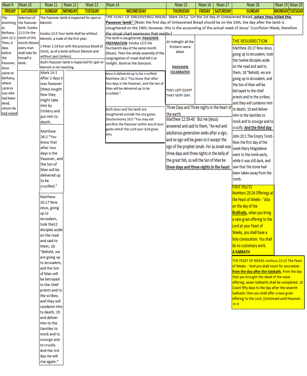 For now forget the days of the week. Begin by building the events according to the Jewish Month of Nisan (also called Abib) and the days of the month beginning with Nisan 9 and ending with Nisan 20.