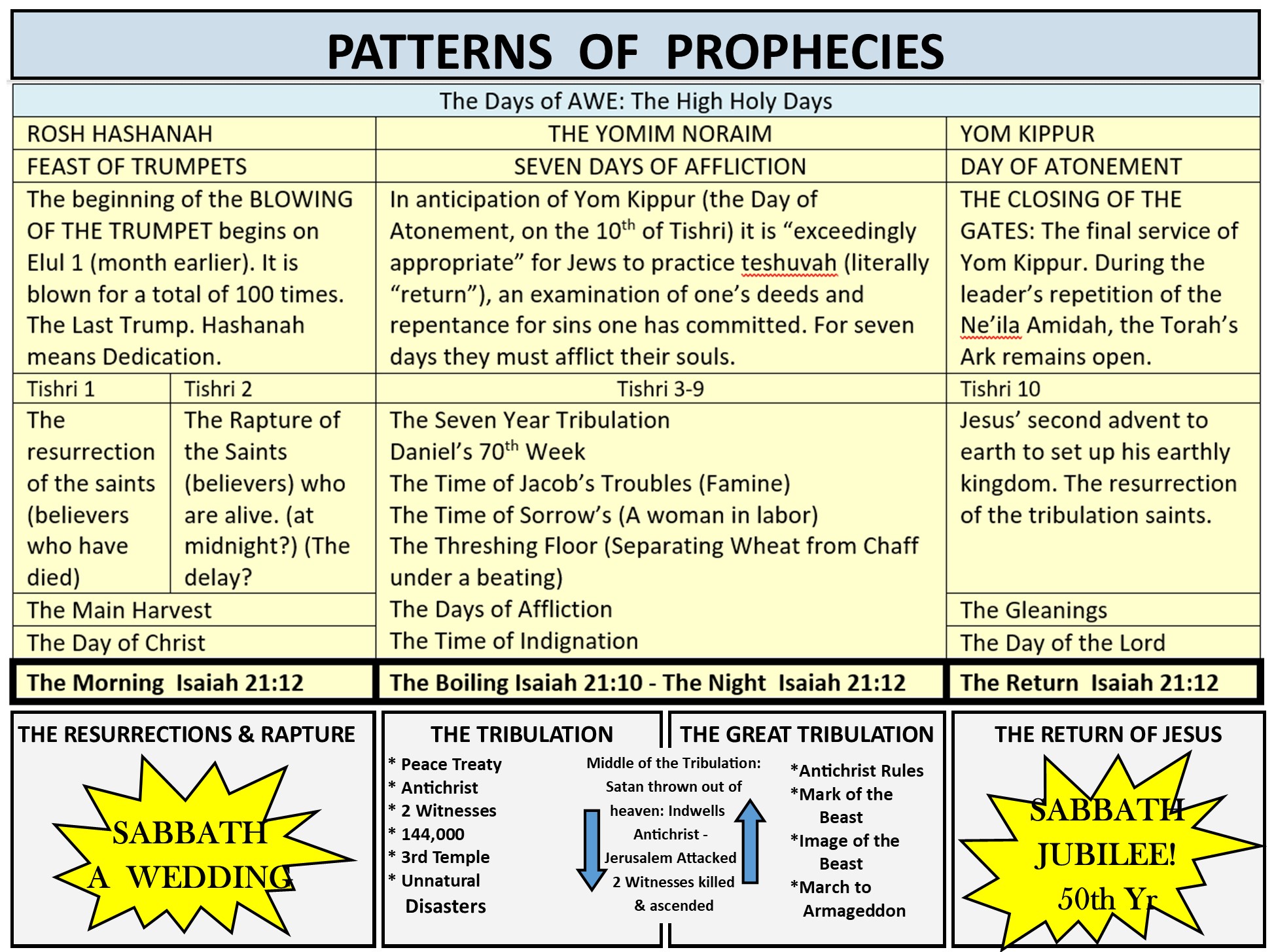 - After the High Holy Days in the Pattern of Prophecies, Half the saints go out to meet the bridegroom in a resurrection/rapture. The other half meets their groom at His return, a time of rejoicing, a Jubilee of liberty.