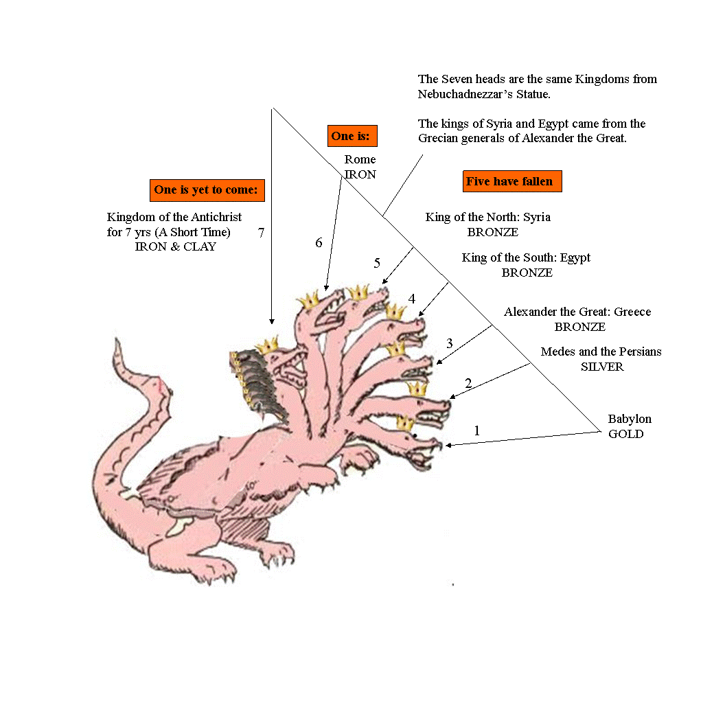 - Daniel 2:34-35 You watched while a stone (Jesus) was cut out without hands, which struck the image on its feet of iron and clay (Kingdom of the Antichrist) and broke them in pieces. 35 Then the iron (Rome), the clay (Coalition), the bronze (Greece), the silver (Persia), and the gold (Babylon) were crushed together, and became like chaff from the summer threshing floors; the wind carried them away so that no trace of them was found. And the stone that struck the image became a great mountain (Kingdom) and filled the whole earth.
