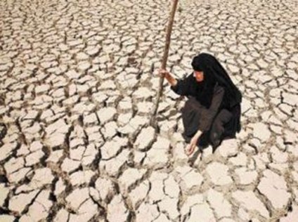 - News article: Adilla Finchaan (above), 50, checks her land in Al Latifiyah, Iraq, July 9, 2009. A two-year drought and dams in Syria and Turkey have helped shrink the Euphrates River. (Hadi Mizban/AP)