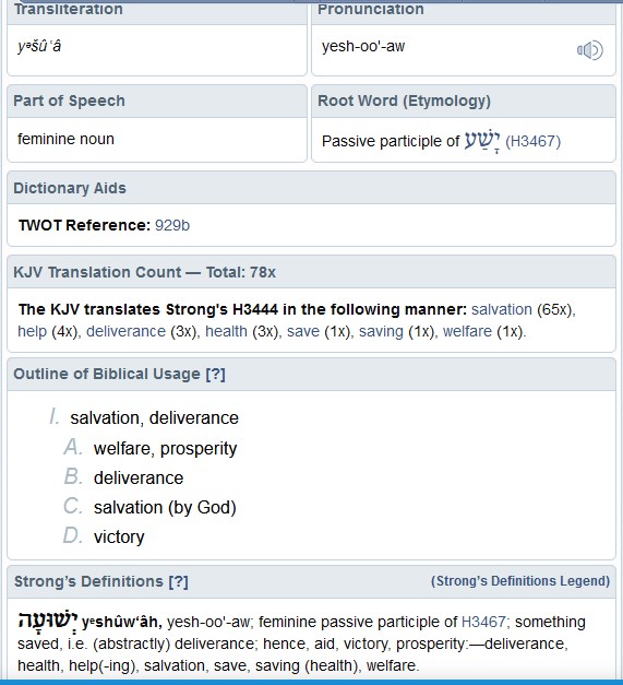 - The Hebrew word of the Greek name Jesus is “Yeshua” yᵊšûʿâ H3444. The Hebrew meaning of Yeshua is “salvation”.