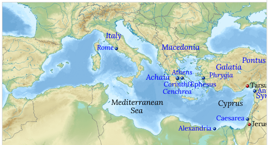 - Paul travels from Athens to Corinth