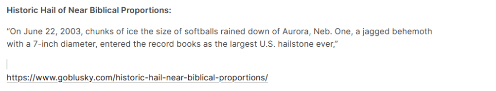 Moral of the Story: There is a Death from Hail … and there is a Death from Hell