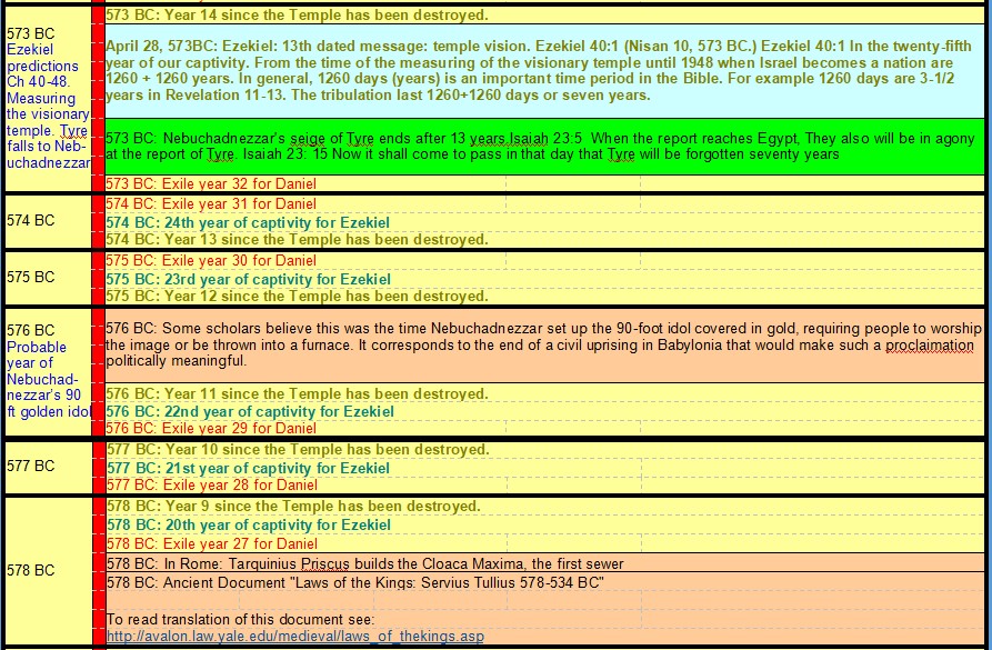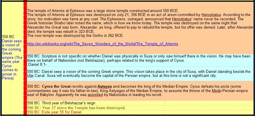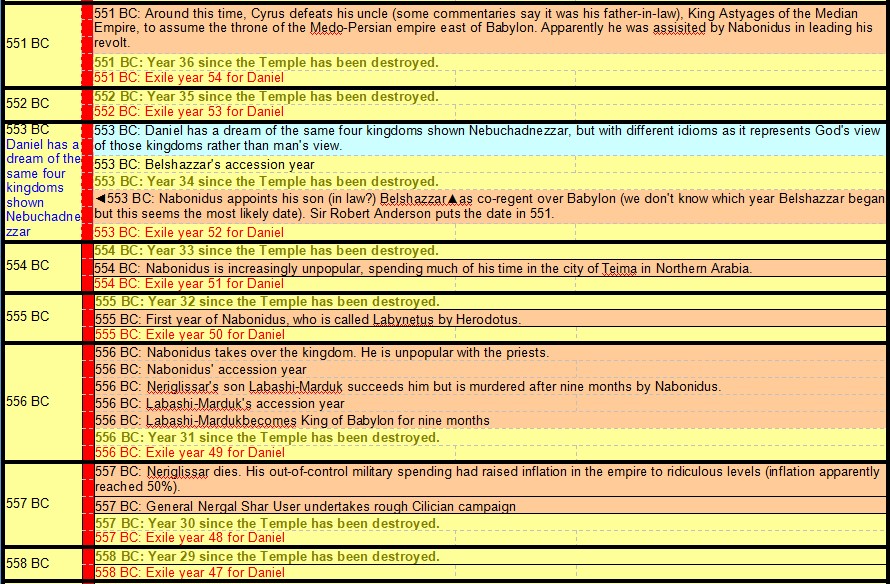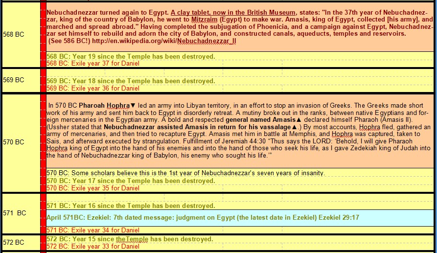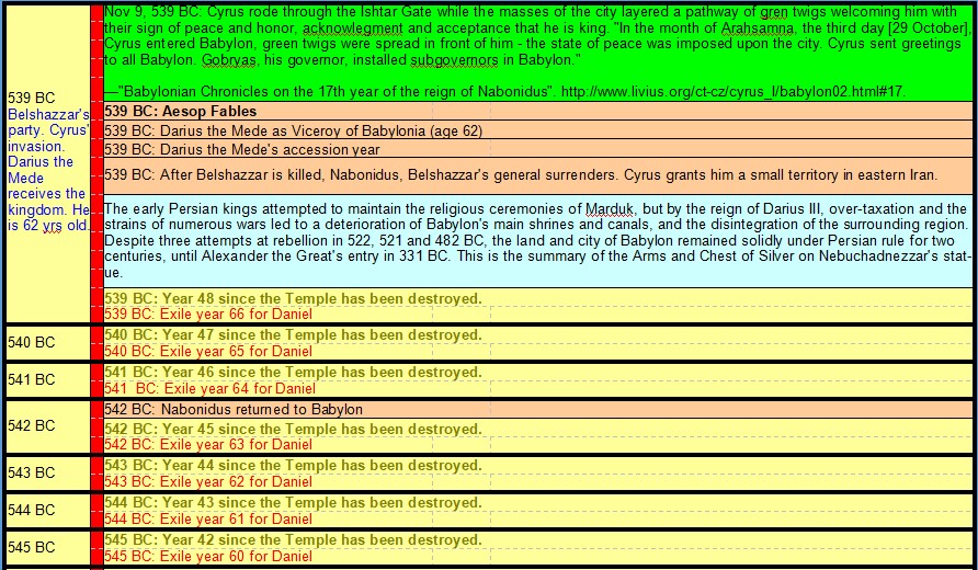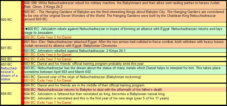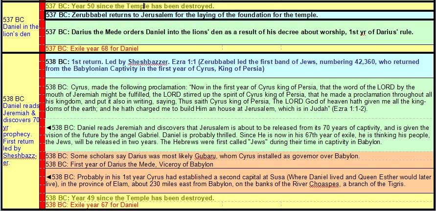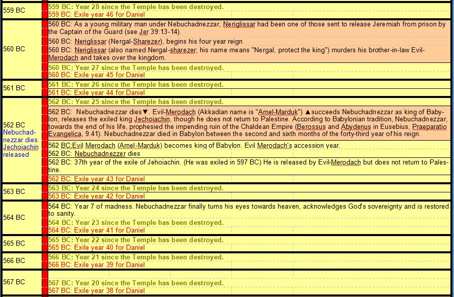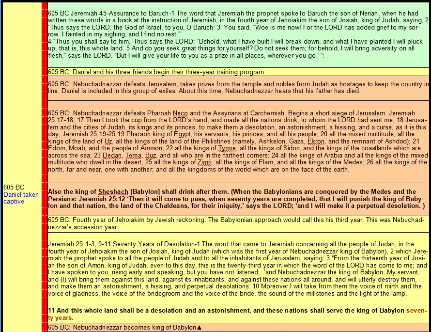 605 BC Daniel taken Hostage – 535 BC End of Daniel’s 70 Years