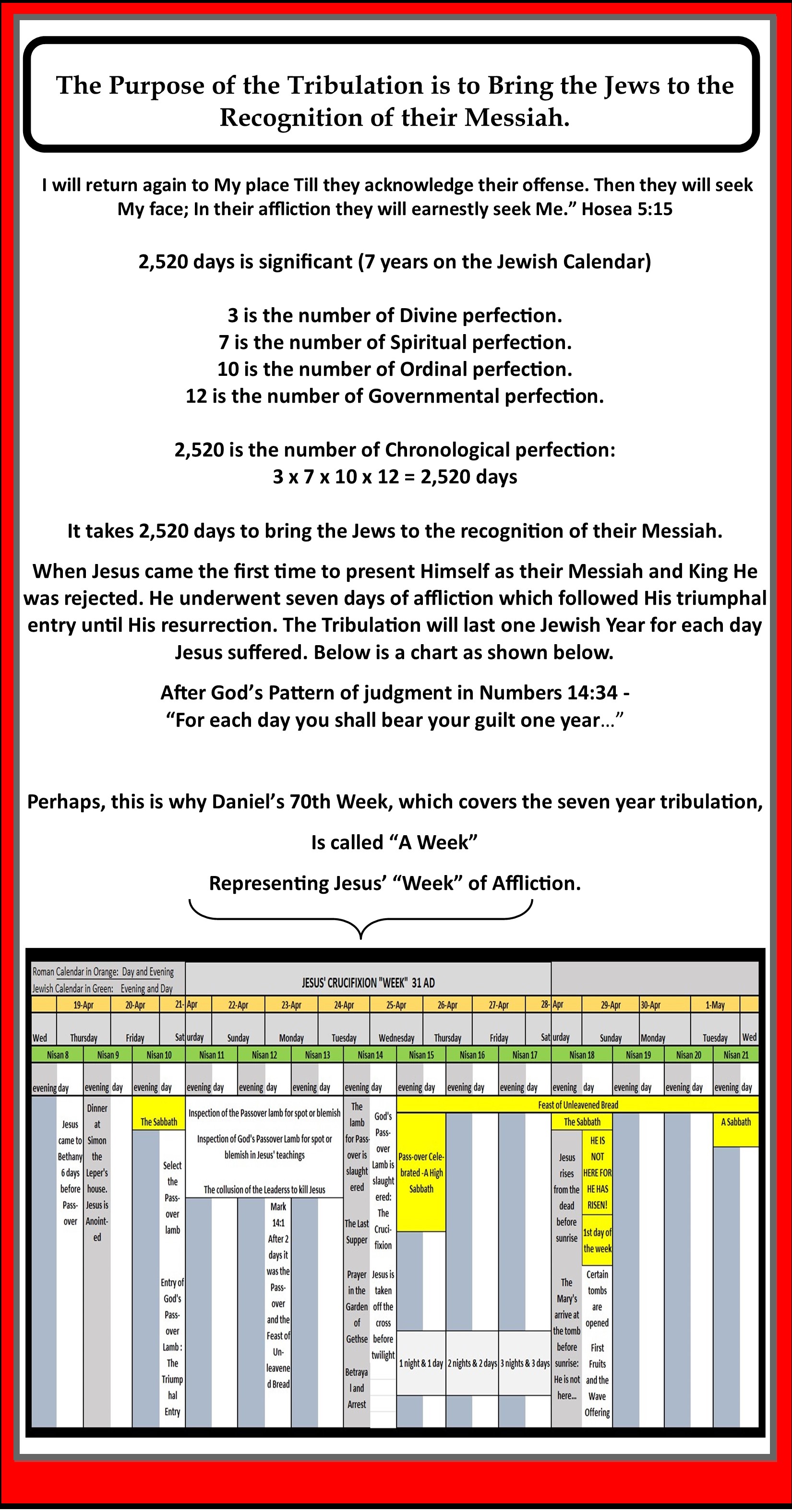 1,260 days plus 1,260 days equals 2,520 days divided by 360 days/year (Hebrew calendar) = 7 years