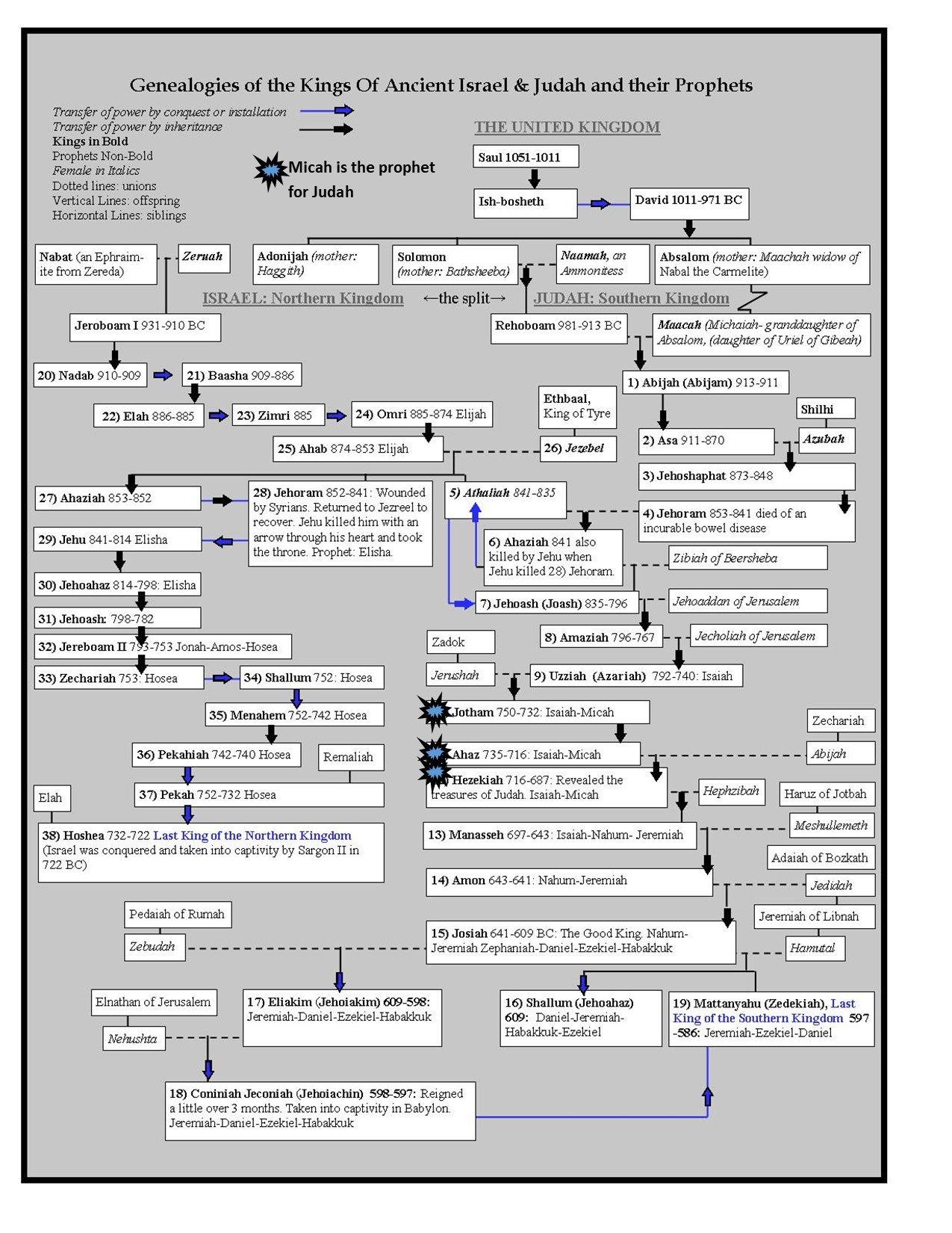 Chart of Kings below for Israel and Judah. Micah was the prophet to the kings with the arrows: