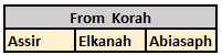 Exodus 6:24 And the sons of Korah were Assir, Elkanah, and Abiasaph. These are the families of the Korahites.