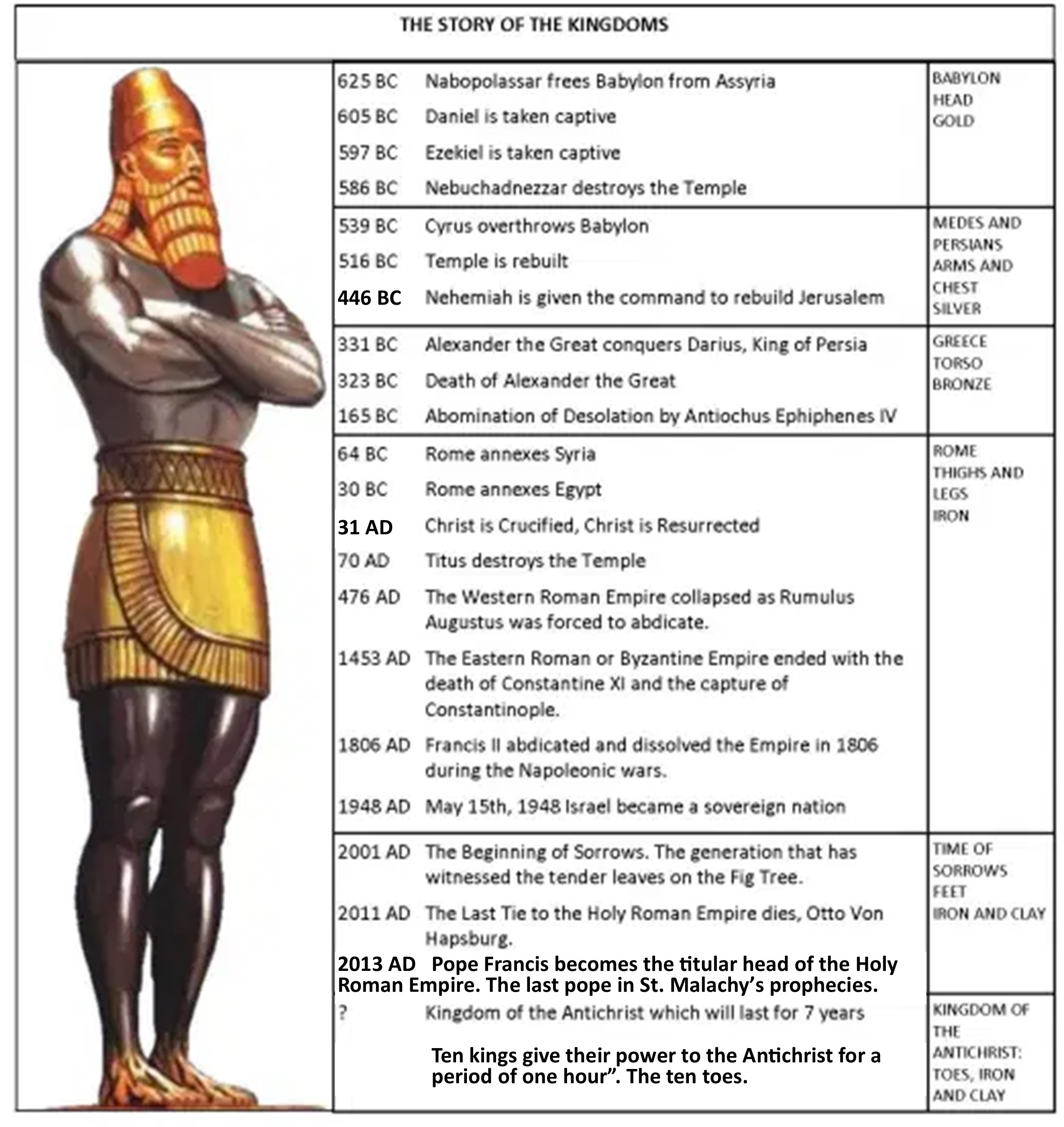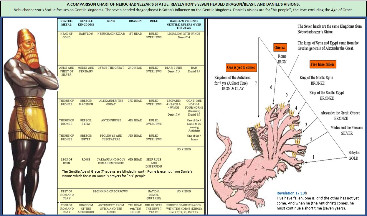 PICTURE SIX: COMPARISON CHARTS BETWEEN NEBUCHADNEZZAR’S STATUE, THE LEVIATHAN/DRAGON, AND DANIEL’S VISION