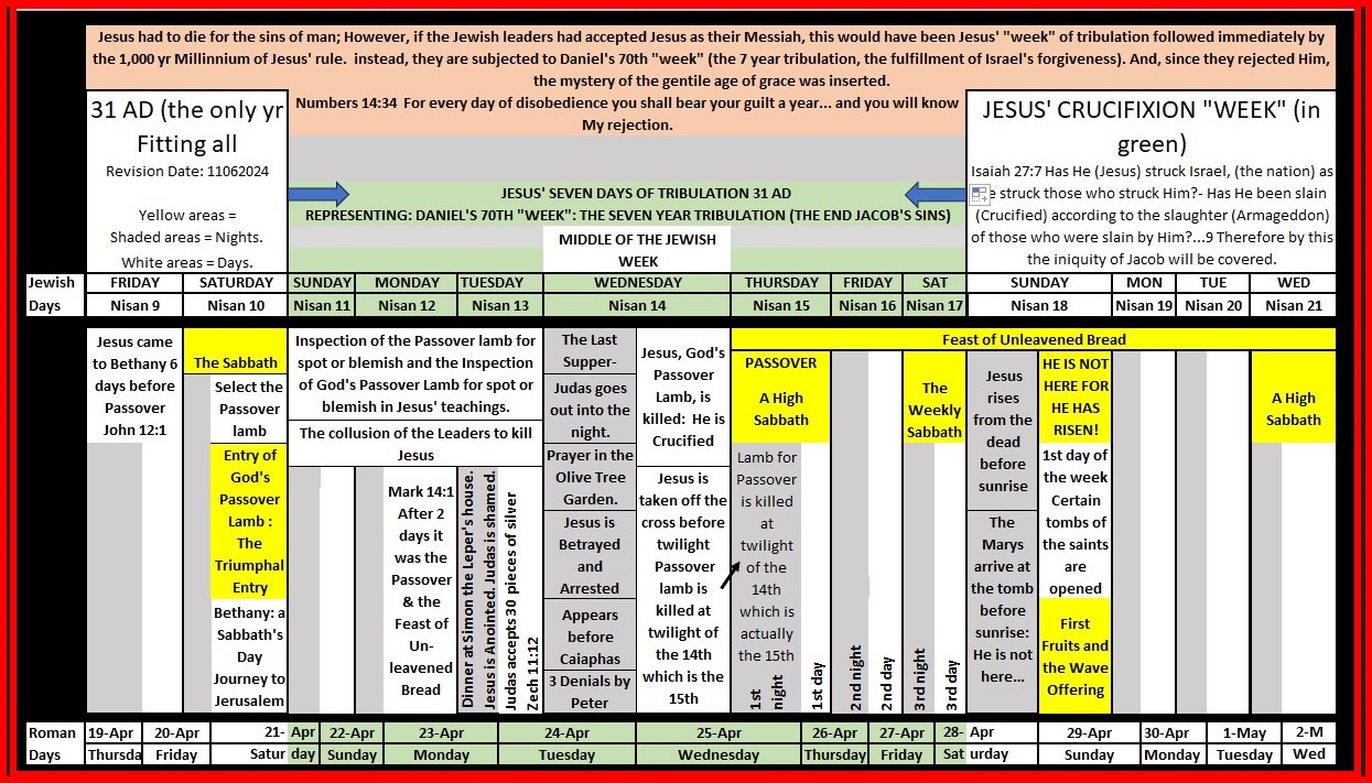 BELOW: For those who may have questions about how these Roman dates (which are day/evening driven) compare to Jewish dates (which are evening/day driven) see below. These clarify some seemingly inconsistent days in scripture because each day is split between Jewish days and Roman days: