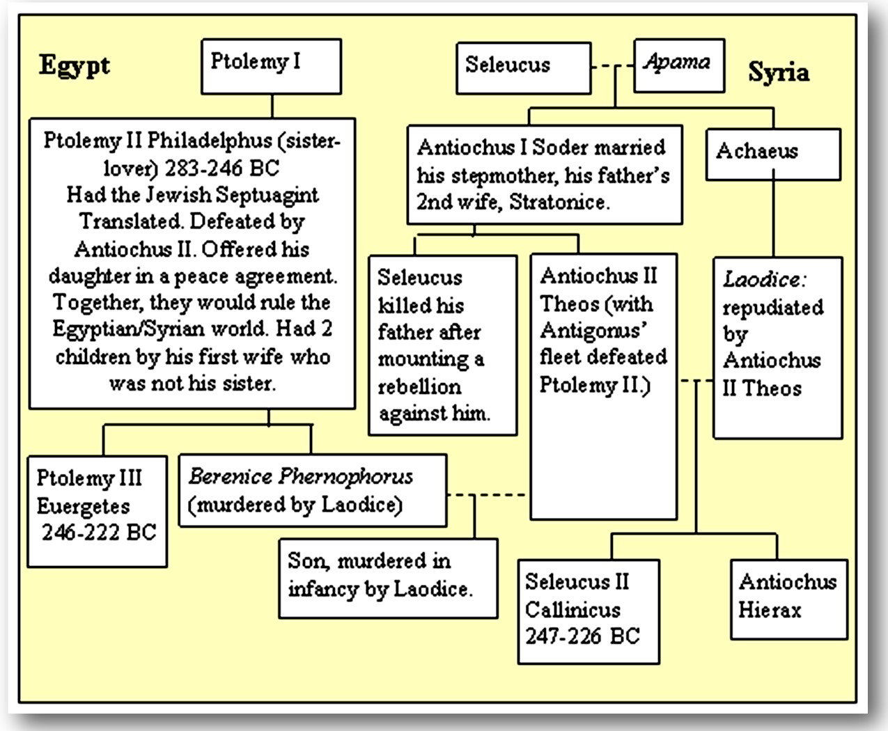 - Antiochus II had to repudiate/divorce his present wife Laodice (which enraged Laodice, and she would make him pay!)