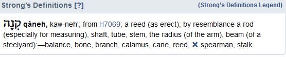 - Reed: qānê H7070 Note the definition with the “X’ = “Spearman”