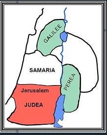 The territories of Antipas shows below in green. The territories of his brother Archelaus shows below in red: