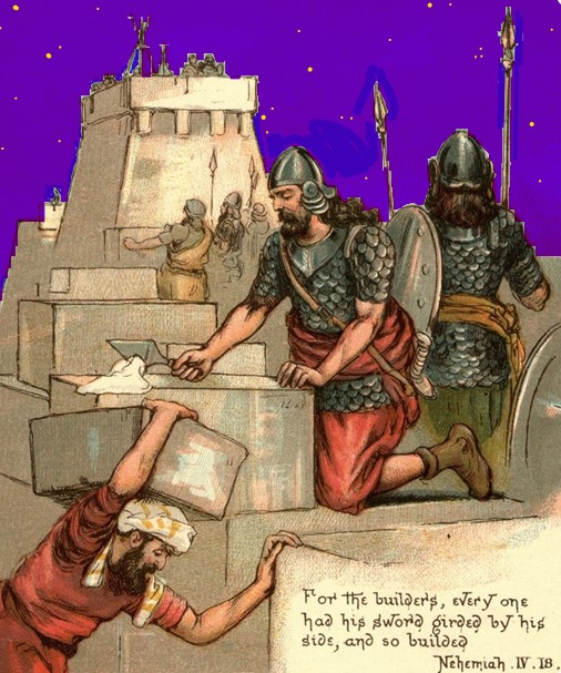 “For the builders, every one had his sword girded by his side, and so builded.” Nehemiah IV 18″