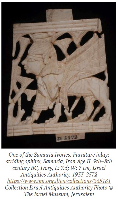 - “Some of the most important remains of the Israelite period include a valuable collection of ivory carvings, which were probably from the palace of King Ahab (~874–c. 853 BC), and a series of ostraca (pottery or limestone inscription fragments) from the time of King Jeroboam II (8th century BC).”Some of the most important remains of the Israelite period include a valuable collection of ivory carvings, which were probably from the palace of King Ahab (~874–c. 853 BC), and a series of ostraca (pottery or limestone inscription fragments) from the time of King Jeroboam II (8th century BC).”