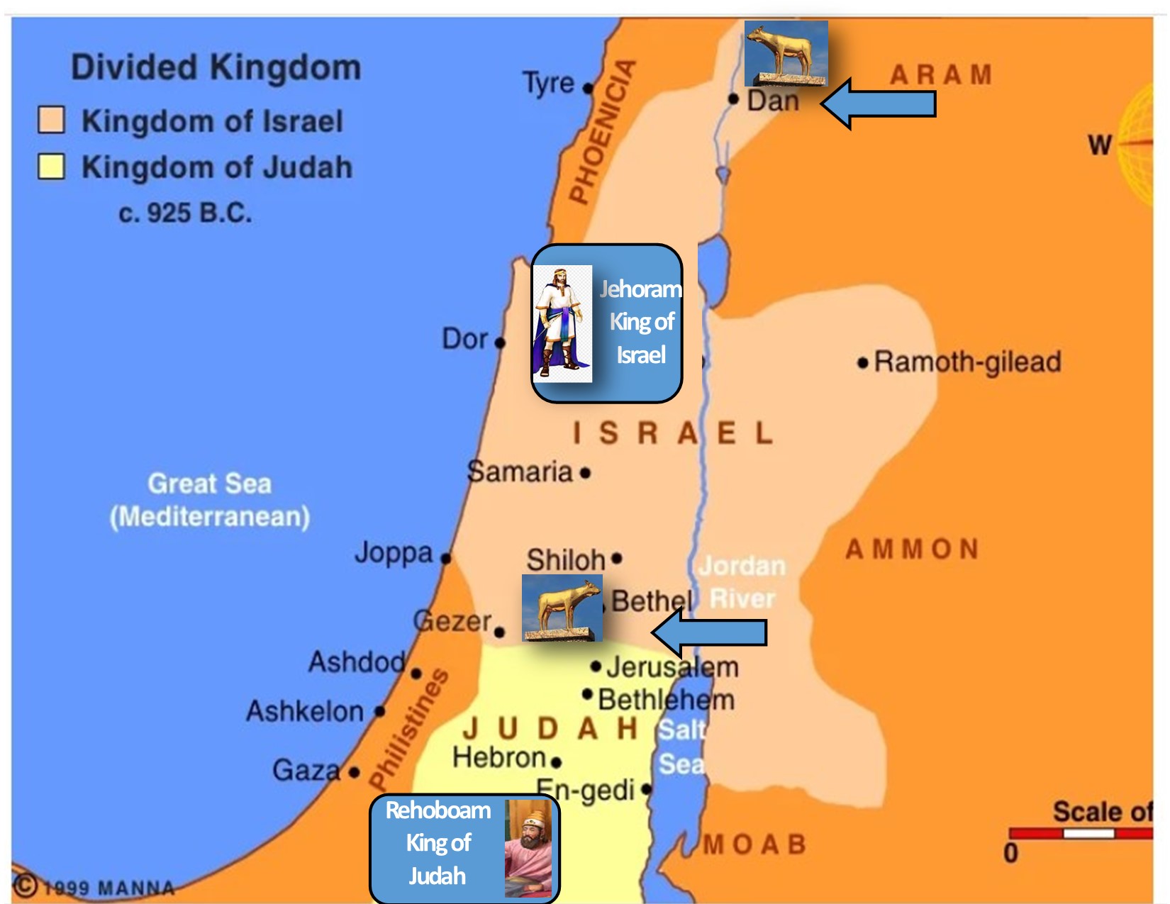 - History: Back when the nation split into Israel and Judah, the first Jeroboam’s “sin” was creating two calves of gold, and sending one to Bethel as a worship site in the south of the Kingdom, and the other to Dan as a worship site in the north, so that the people of the northern kingdom would not have to continue to go to Jerusalem to worship (See: I Kings 12:26–30).