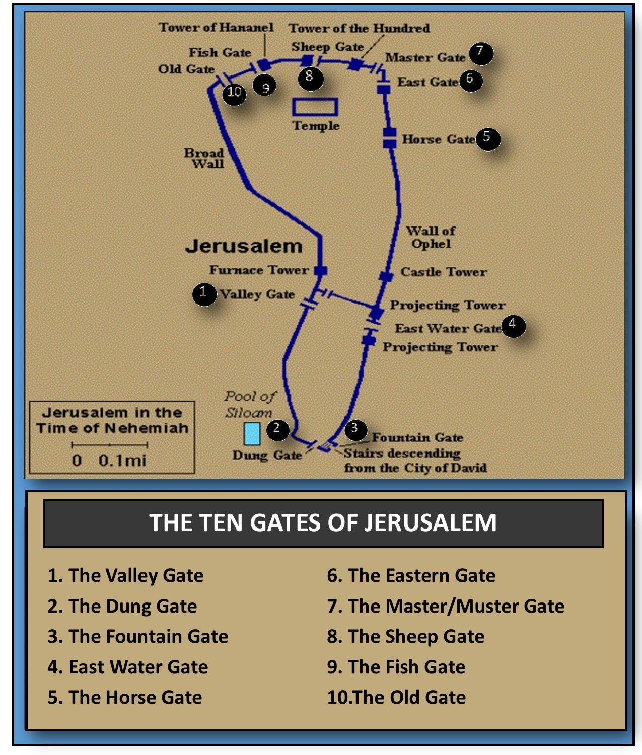 Nehemiah 2:11 So I came to Jerusalem and was there three days. 12 Then I arose in the night, I and a few men with me; I told no one what my God had put in my heart to do at Jerusalem; nor was there any animal with me, except the one on which I rode. 13 And I went out by night through the Valley Gate to the Serpent Well and the Refuse (Dung) Gate, and viewed (examined) the walls of Jerusalem which were broken down and its gates which were burned with fire. 14 Then I went on to the Fountain Gate and to the King’s Pool, but there was no room for the animal under me to pass. 15 So I went up in the night by the valley (torrent valley, wadi), and viewed (examined) the wall; then I turned back and entered by the Valley Gate, and so returned. 16 And the officials did not know where I had gone or what I had done; I had not yet told the Jews, the priests, the nobles, the officials, or the others who did the work.