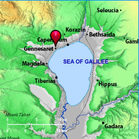 Matthew 14:34 When they had crossed over, they came to the land of (to land at) Gennesaret.