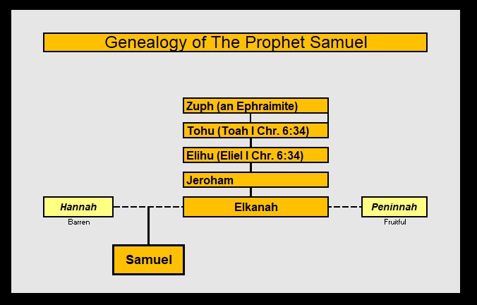 I Samuel 1:1 Now there was a certain man of Ramathaim Zophim, of the mountains of Ephraim, and his name was Elkanah the son of Jeroham, the son of Elihu (Eliel, I Chronicles 6:34), the son of Tohu (Toah, I Chronicles 6:34), the son of Zuph, an Ephraimite.