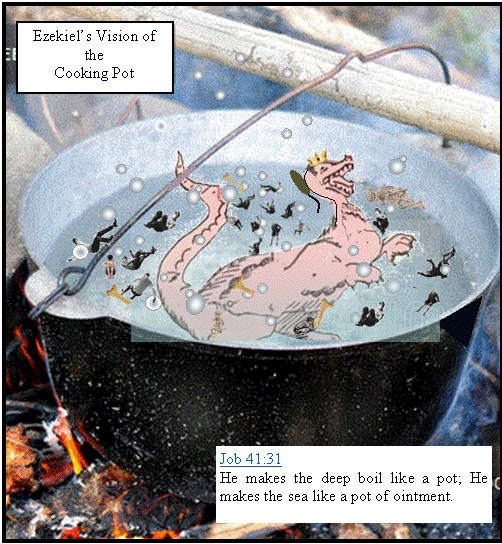 Job 41:31 He makes the deep boil like a pot; He makes the sea like a pot of ointment. - Jeremiah 1:13 And the word of the Lord came to me the second time, saying, “What do you see?” And I said, “I see a boiling pot, and it is facing away from the north.”