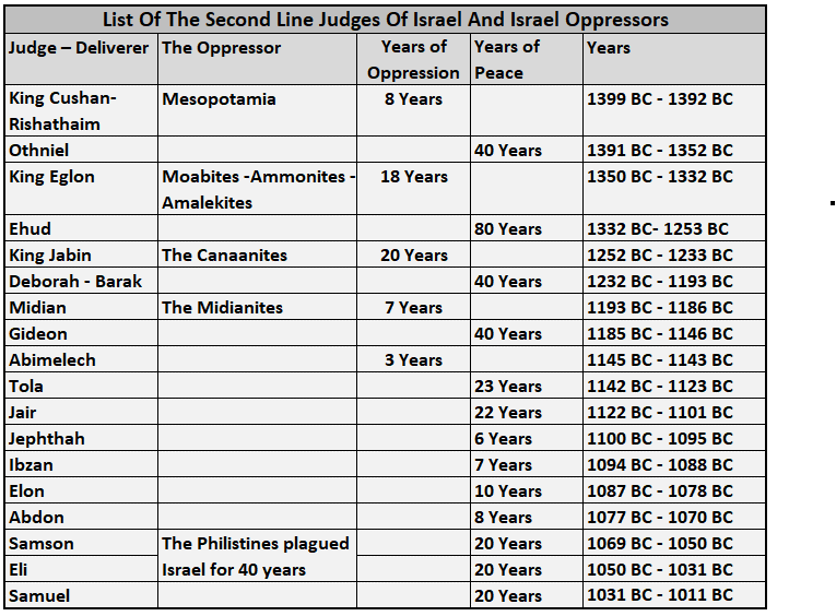 For a Timeline of Events See Timeline 1171 BC-1270 BC. (Then) Scroll down to 1233 BC. - The Times of the Judges: