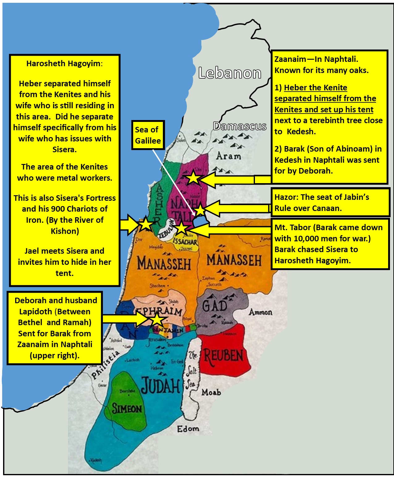 - Enter: Stage Right, Heber the Kenite who shares the location of Barak’s army with Sisera, the commander of Jabin’s army.