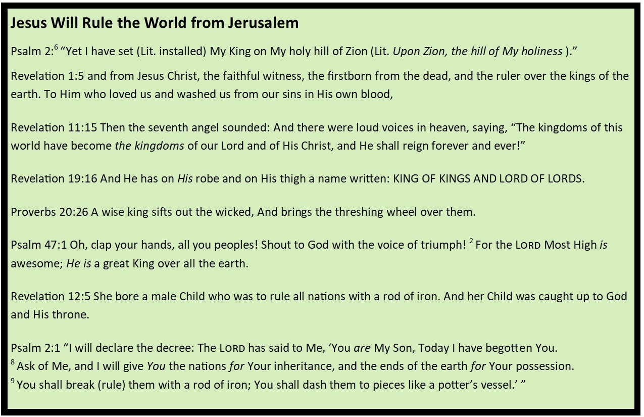- Jesus was born in Bethlehem. When He returns to earth He will rule the world from Jerusalem.