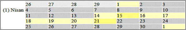 - Shown Below: The Jewish Calendar for 31 AD: (When Jesus was Crucified and Resurrected) in the month of Nissan.