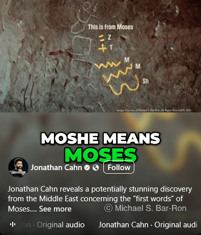 Note: written in ancient pictographs. The message says “This is from Moshe (Moses)”